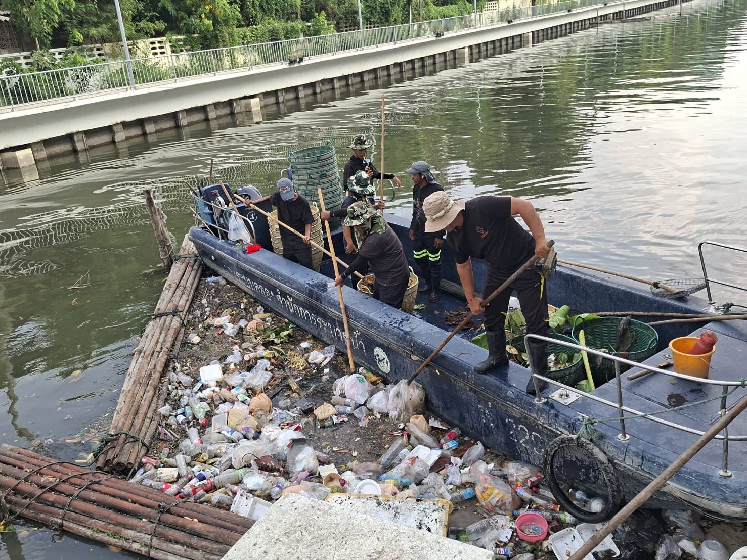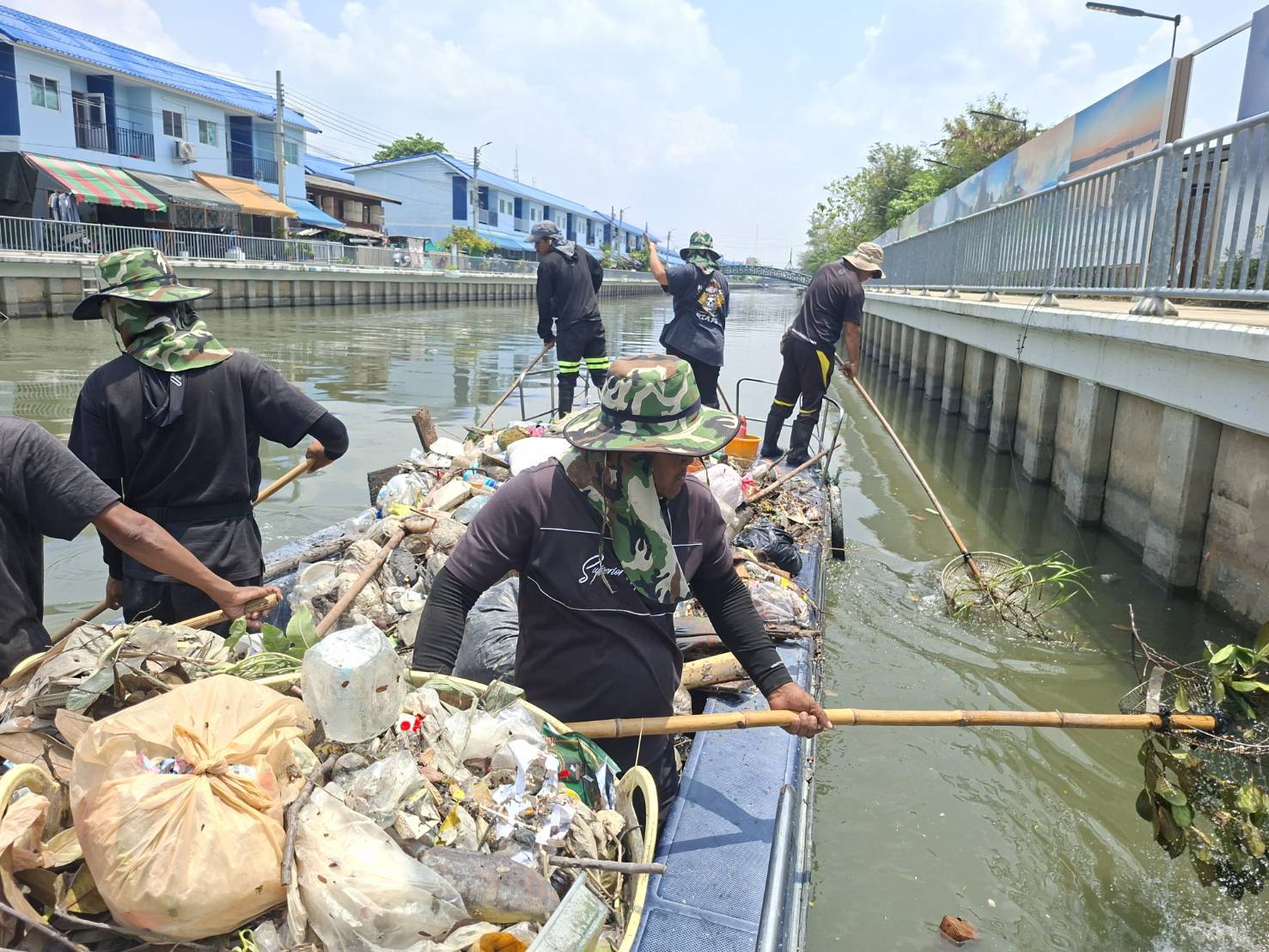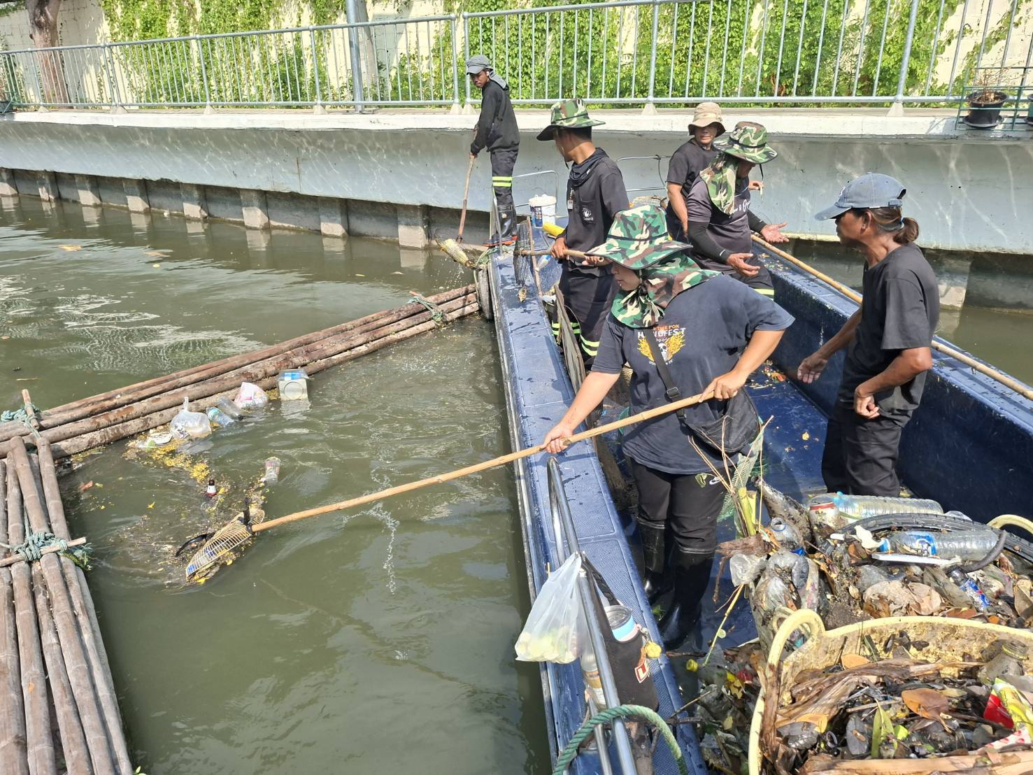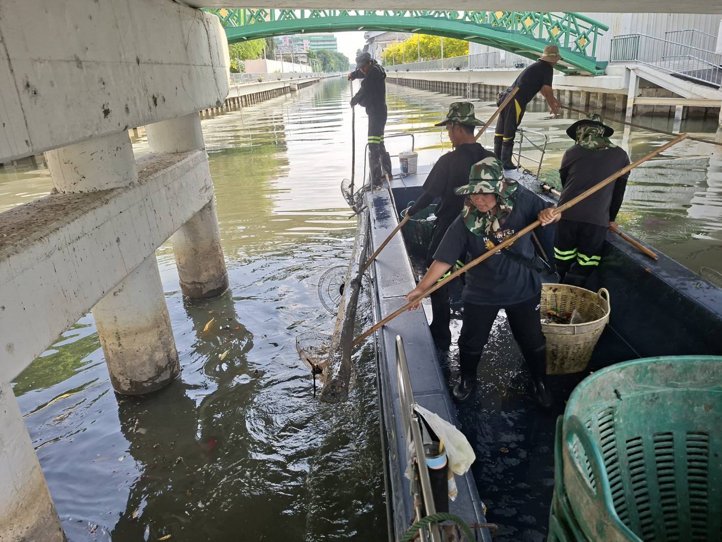 เจ้าหน้าที่ เก็บขยะและวัชพืชคลองเปรมประชากร ช่วงชุมชนตึกแดงบางซื่อเขตบางซื่อถึงสะพานงามวงศ์วานเขตจตุจักร