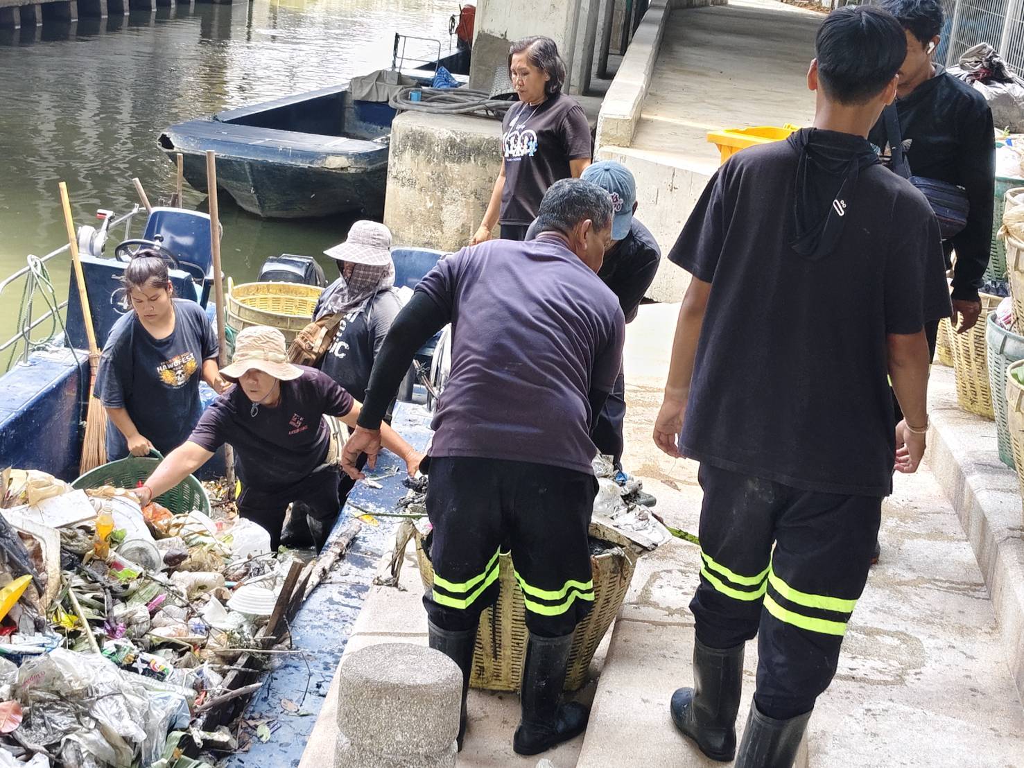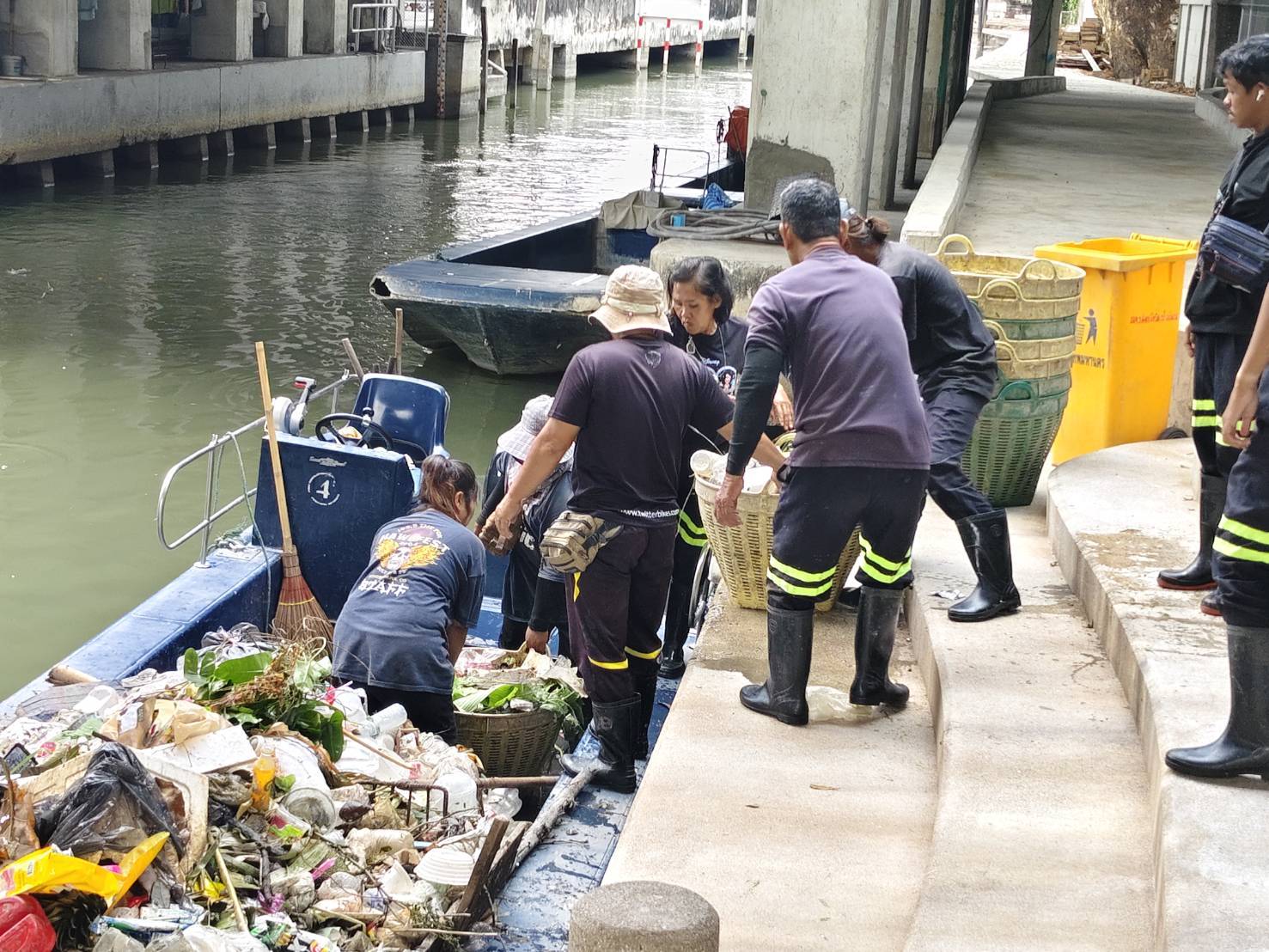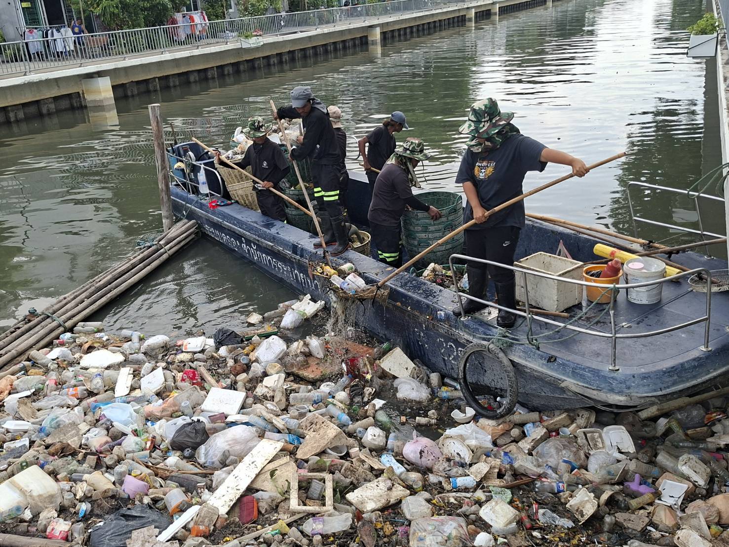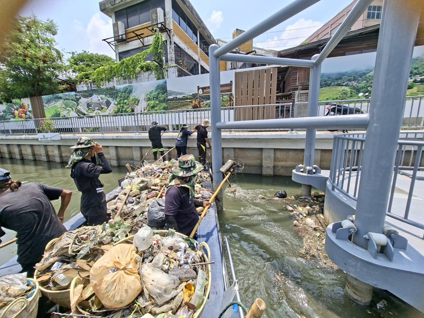 เจ้าหน้าที่ เก็บขยะและวัชพืชคลองเปรมประชากร ช่วงชุมชนตึกแดงบางซื่อเขตบางซื่อถึงสะพานงามวงศ์วานเขตจตุจักร