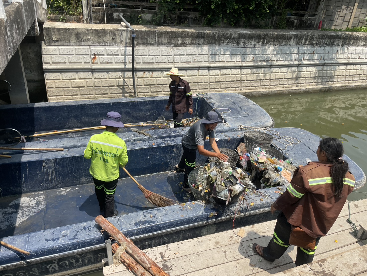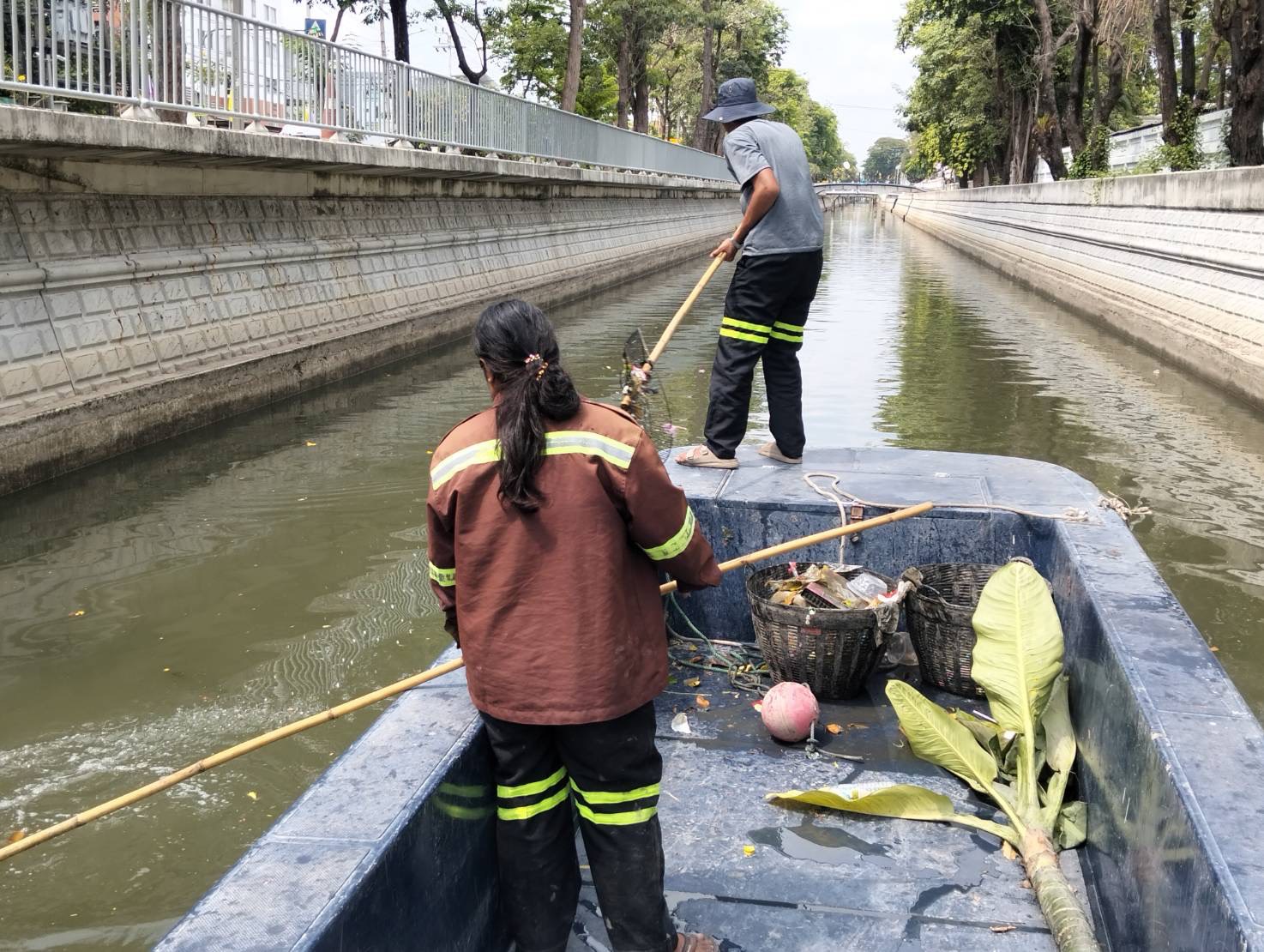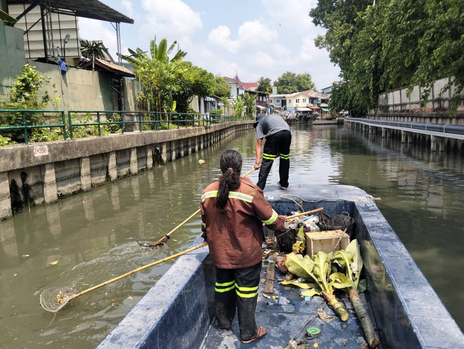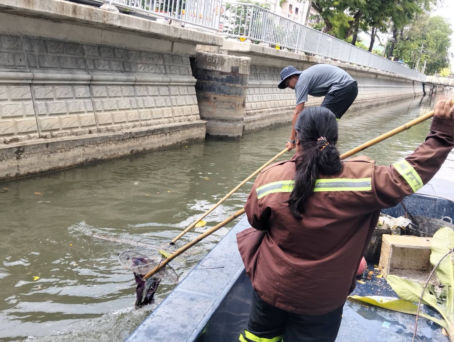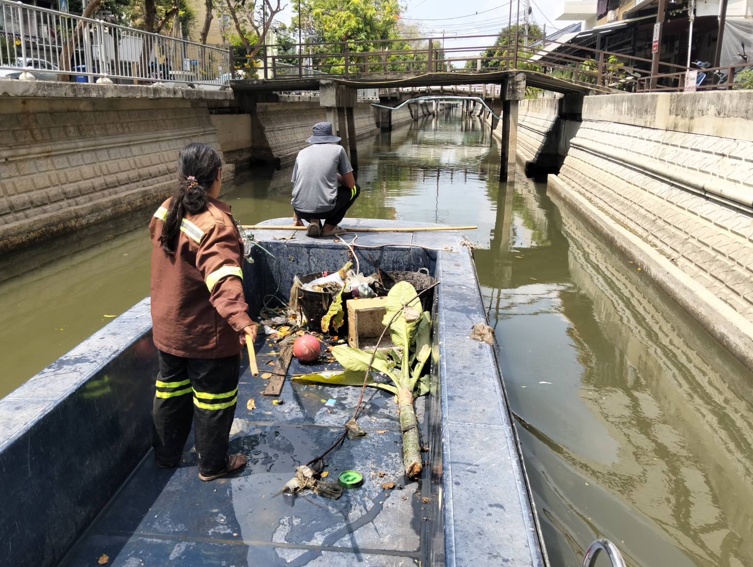 เจ้าหน้าที่ เก็บขยะและวัชพืชคลองสามเสน-คลองเปรมประชากร พื้นที่เขตดุสิต