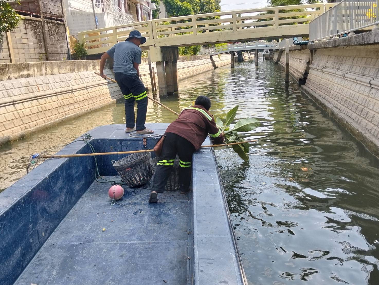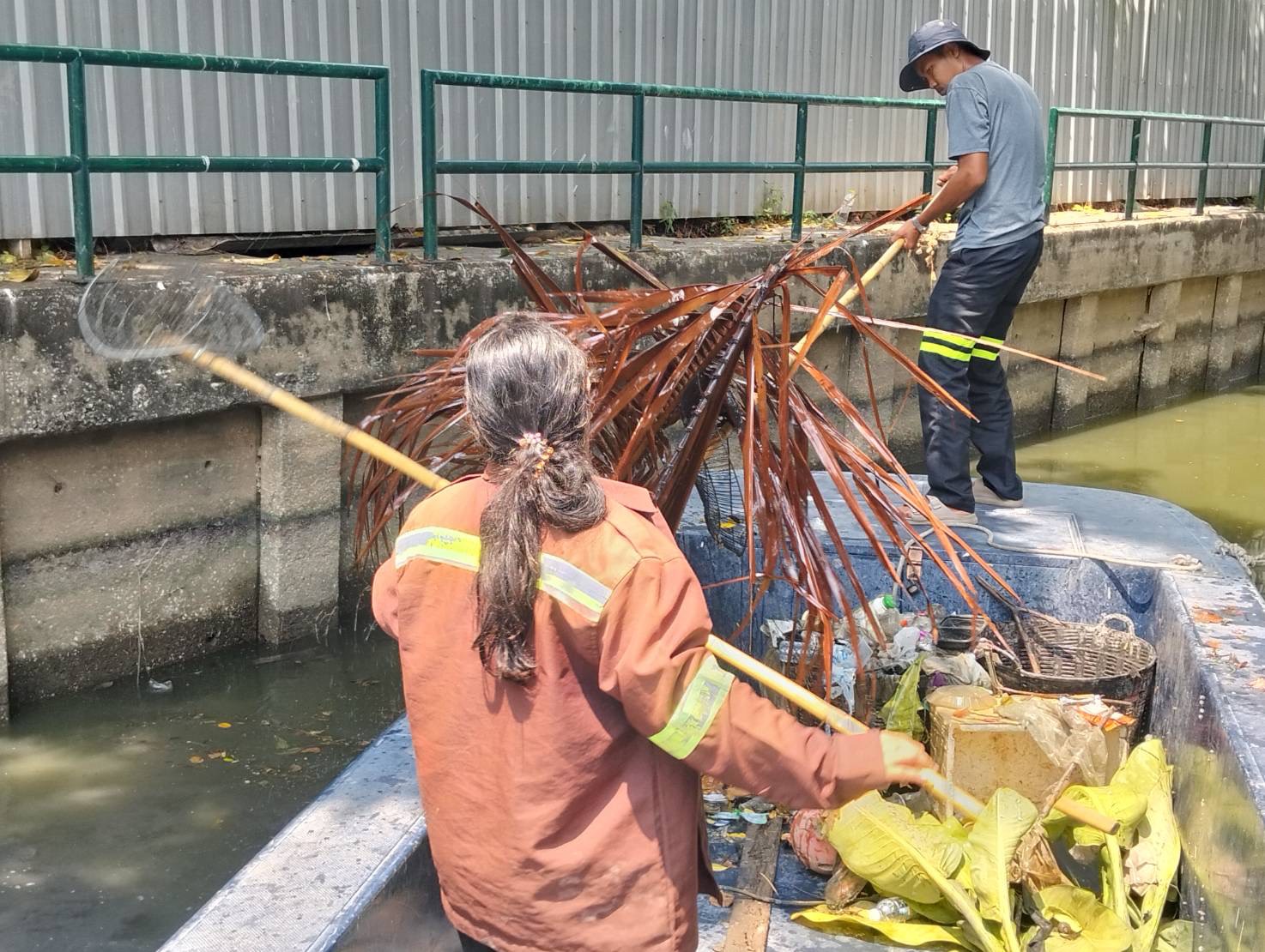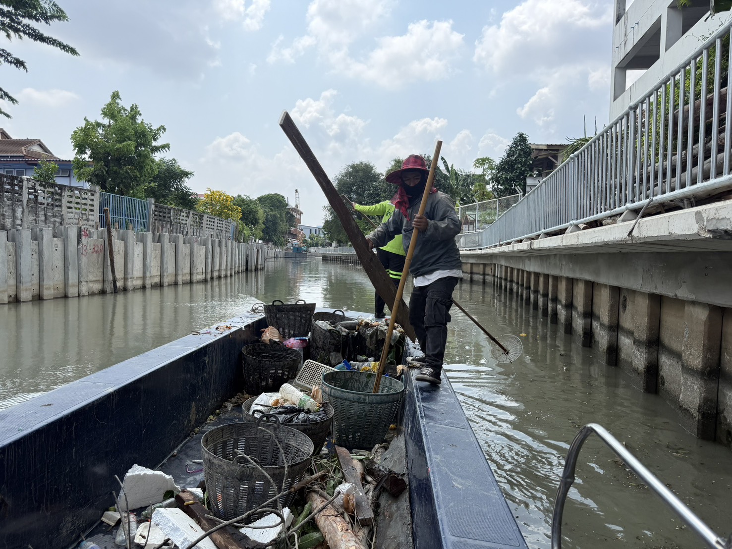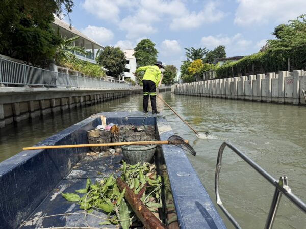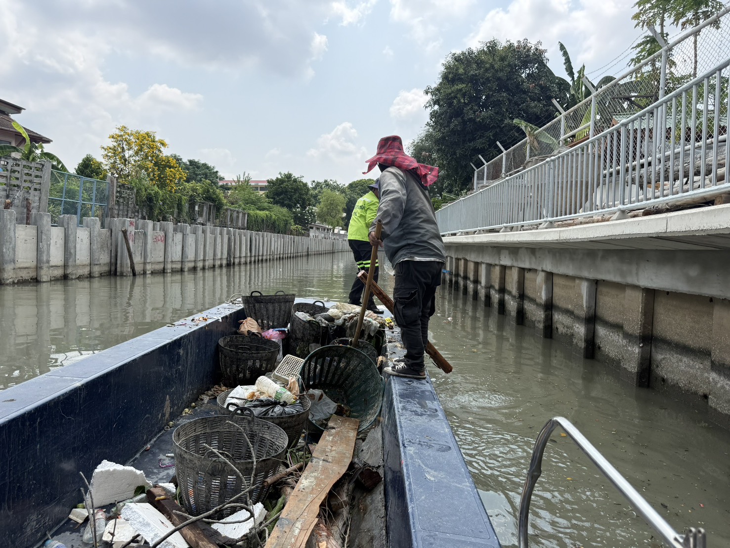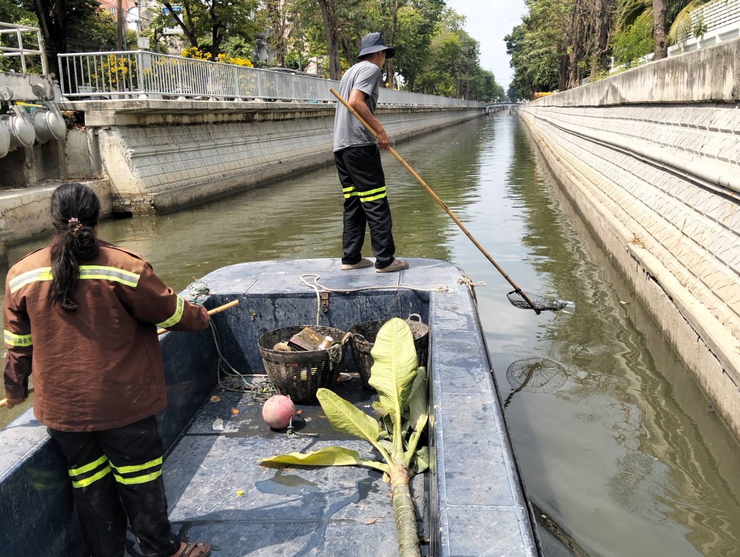 เจ้าหน้าที่ เก็บขยะและวัชพืชคลองสามเสน-คลองเปรมประชากร พื้นที่เขตดุสิต
