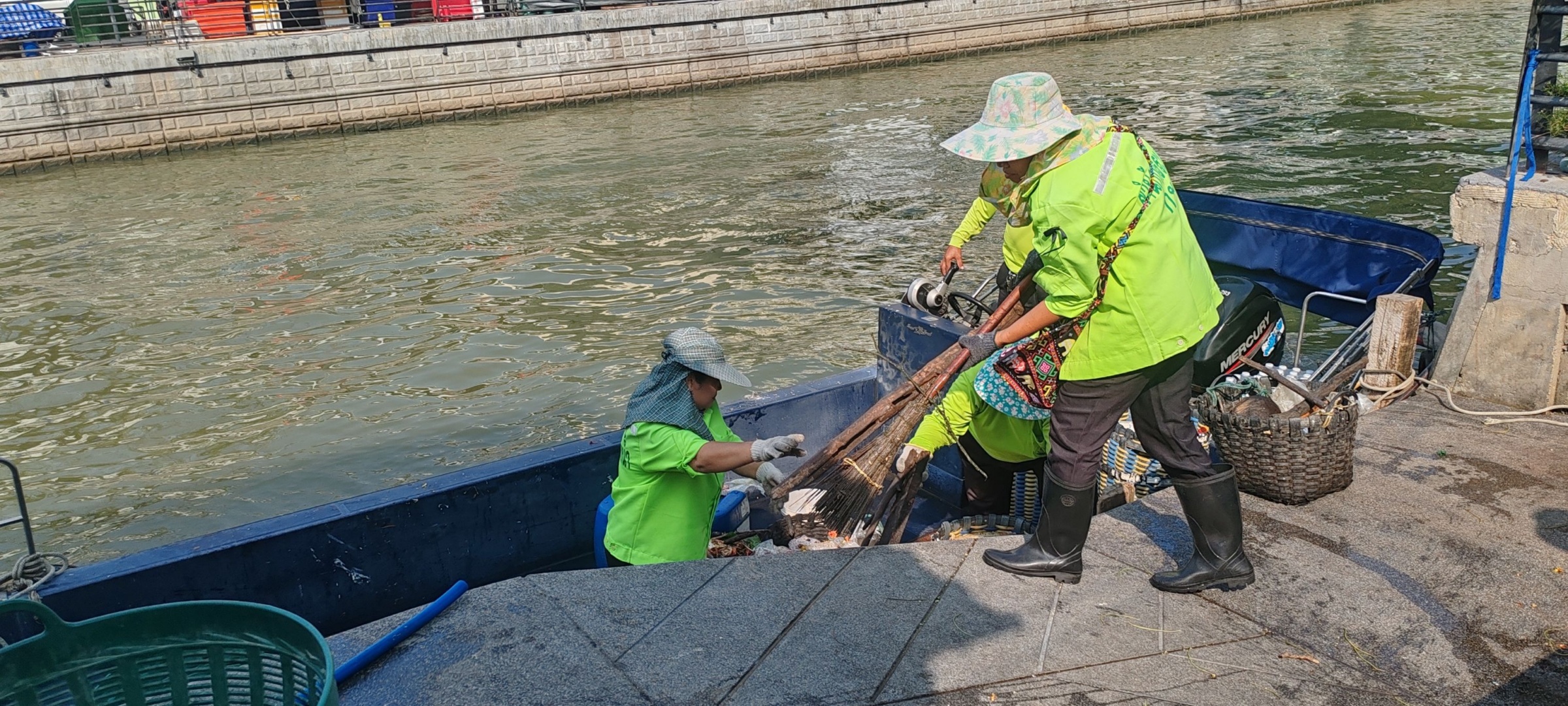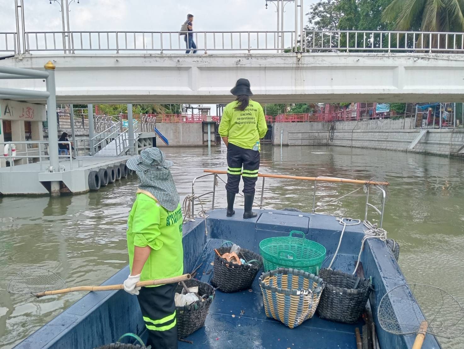 เจ้าหน้าที่ จัดเก็บขยะกำจัดวัชพืชคลองไผ่สิงโต ช่วงถนนรัชดาตัดถนนอโศก พื้นที่เขตคลองเตย 28 เมษายน 2026