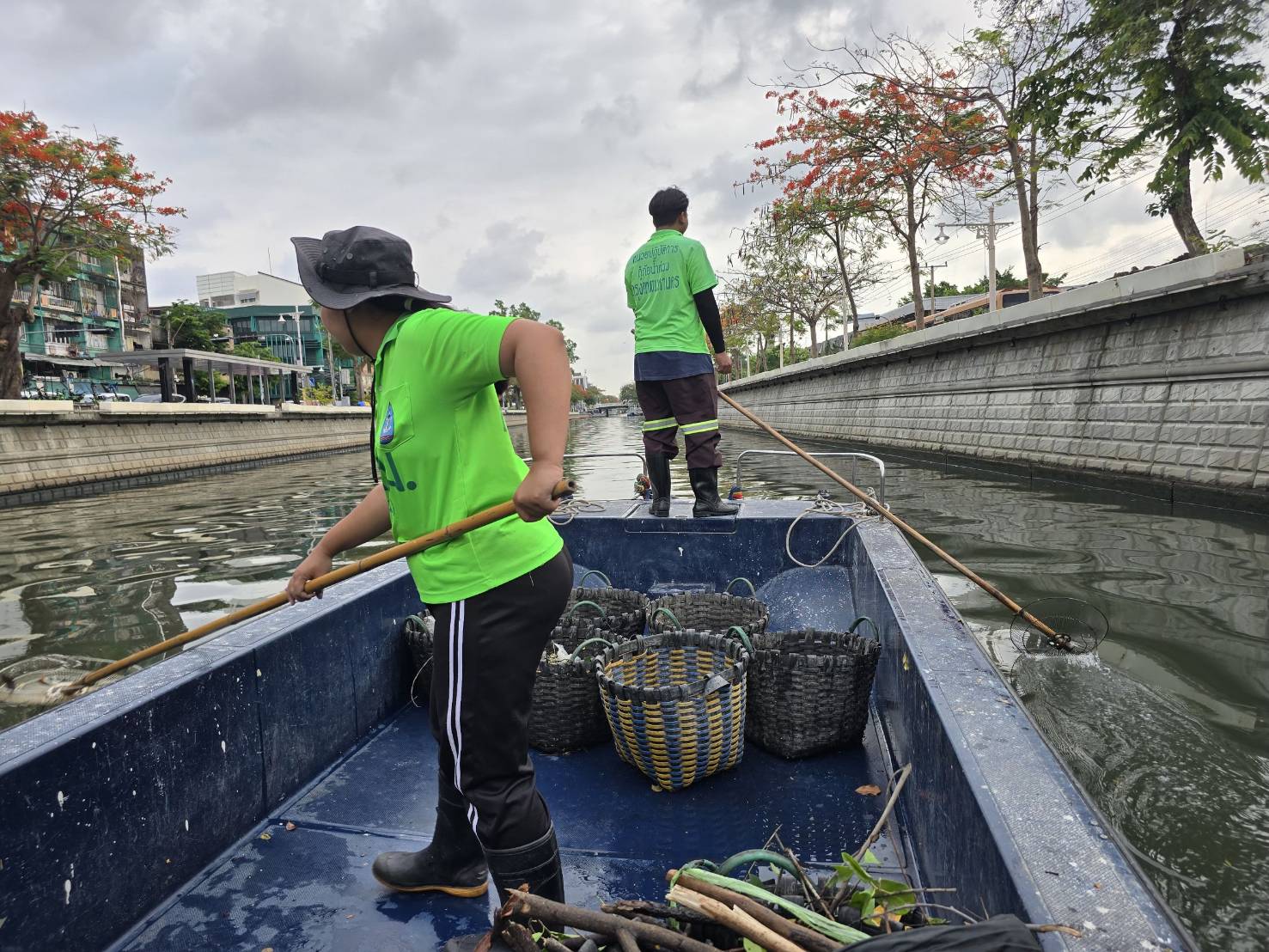 เจ้าหน้าที่ จัดเก็บขยะกำจัดวัชพืชคลองไผ่สิงโต ช่วงถนนรัชดาตัดถนนอโศก พื้นที่เขตคลองเตย 28 เมษายน 2026