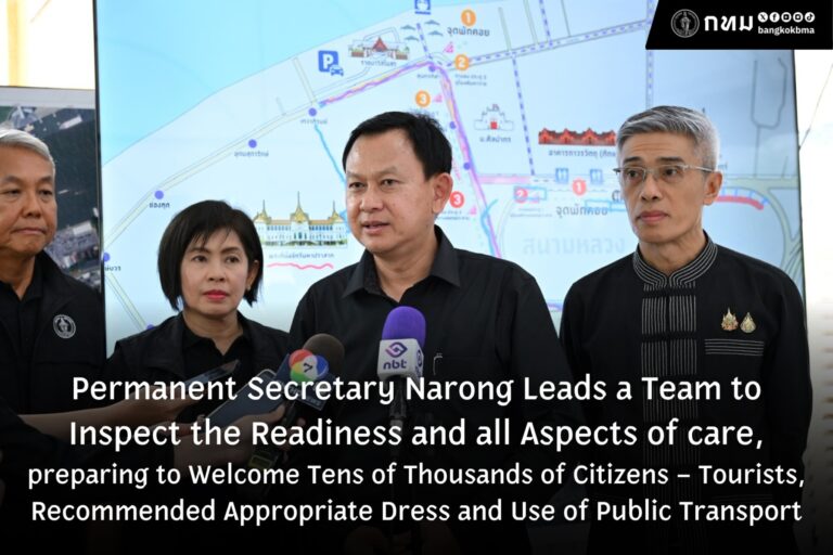 (November 3, 2025) Mr. Taiwhut Khankaew, Deputy Permanent Secretary for the Bangkok Metropolitan Administration (BMA), reported on the BMA’s daily operations to facilitate and provide convenience to the public paying respects before the portrait of Her Majesty Queen Sirikit The Queen Mother. The det