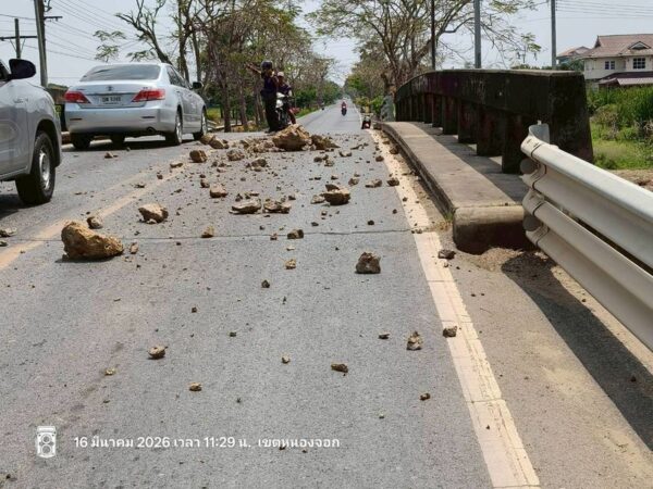 เขตหนองจอก ปฎิบัติงานให้คนงานกวาด แก้ไขปัญหา เก็บกวาดเศษดินหล่น บนสะพาน ถนนผดุงพันธ์